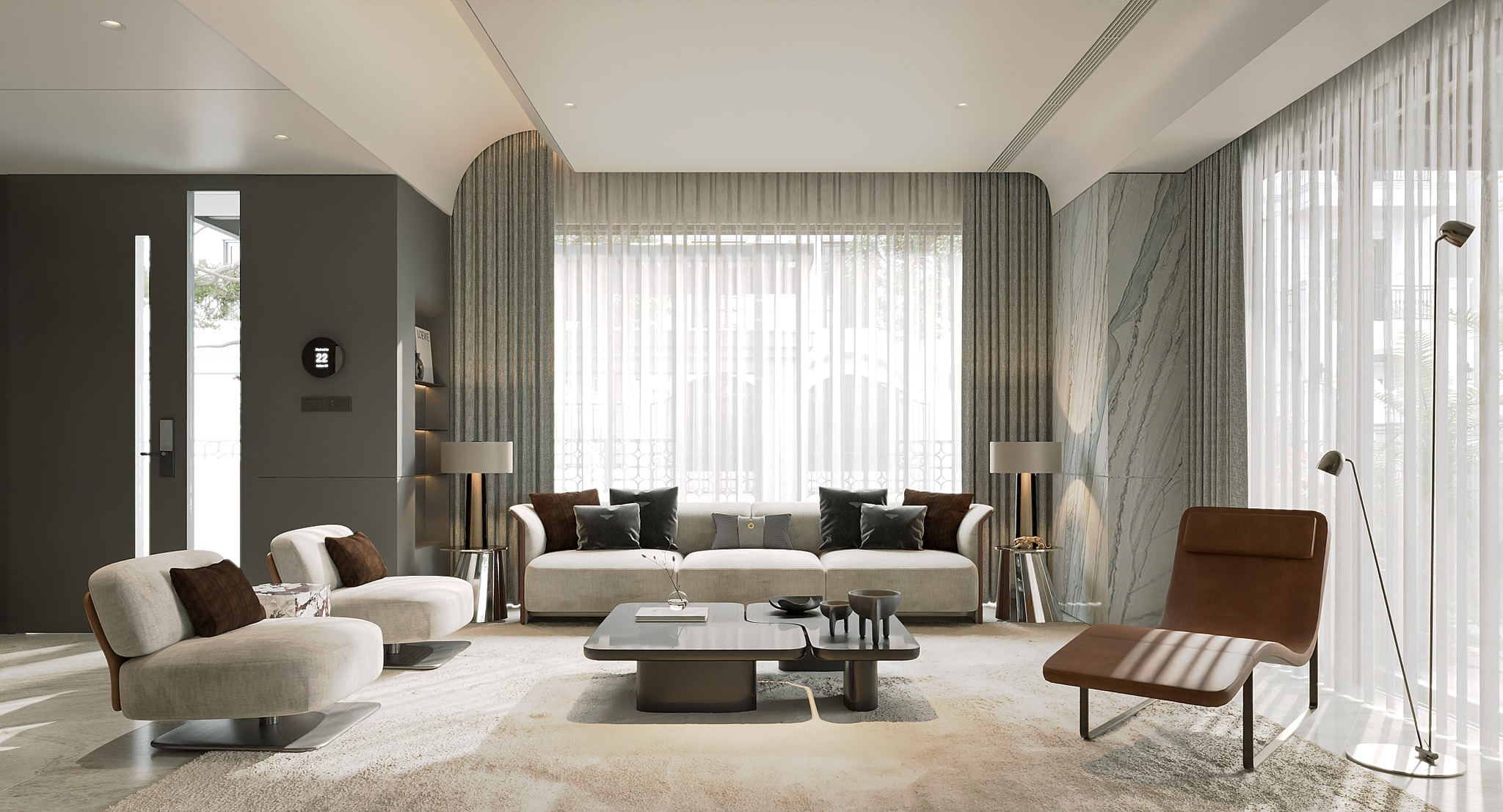 Dự án là một kiệt tác kiến trúc đi theo triết lý Modern Luxury – Contemporary Minimalism (Hiện đại sang trọng và tối giản đương đại), nơi sự sang trọng được thể hiện thông qua tính tinh giản, chất lượng vật liệu và độ hoàn thiện trong từng chi tiết: