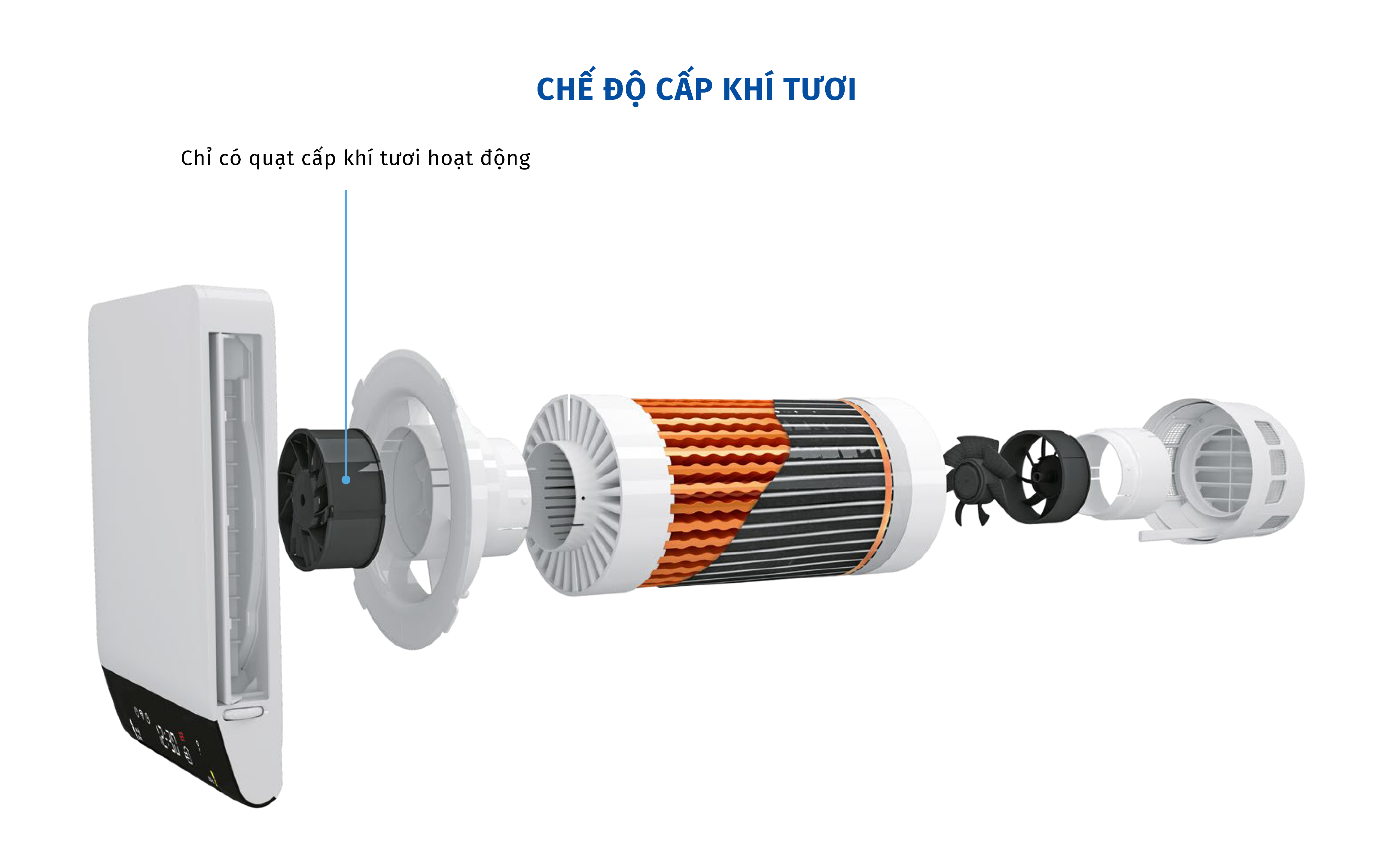 Chế độ chỉ cấp khí tươi: Chỉ có quạt cấp khí tươi hoạt động để đưa khí tươi vào phòng