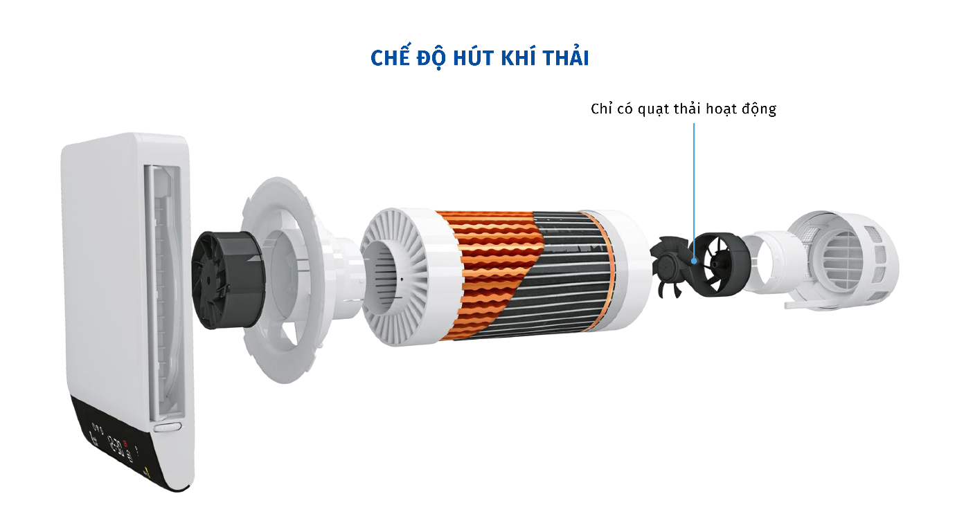 Chế độ chỉ hút khí thải: Chỉ có quạt thải hoạt động nhằm loại bỏ không khí ô nhiễm trong phòng