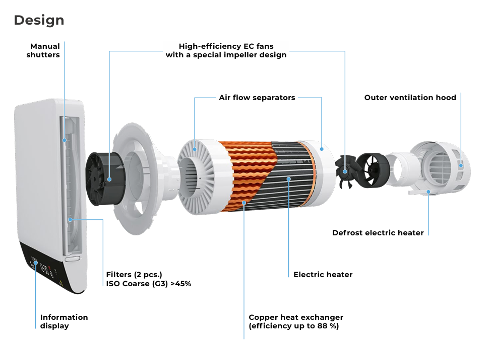 Blauberg Freshpoint là thiết bị thông gió thu hồi nhiệt (HRV) gắn tường dành cho từng phòng, vận hành độc lập với hiệu suất cao. Thiết bị được thiết kế nhằm cung cấp khí tươi sạch liên tục cho không gian kín, hoặc loại bỏ khí thải và các chất ô nhiễm trong nhà.