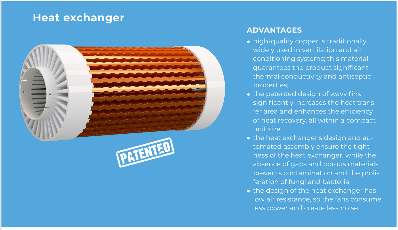 Freshpoint sử dụng bộ trao đổi nhiệt bằng đồng hoạt động theo nguyên lý trao đổi nhiệt qua vách, với hiệu suất thu hồi nhiệt lên tới 88%. Nhờ đó, nhiệt lượng từ luồng khí thải được tận dụng để làm ấm hoặc làm mát luồng khí tươi cấp vào, giúp giảm tải cho hệ thống điều hòa và tiết kiệm điện năng