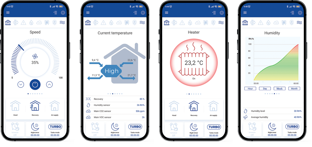 Thiết bị sử dụng động cơ EC của Blauberg Motoren với 3 tốc độ, cho phép điều chỉnh riêng từng quạt từ 10% tới 100%.