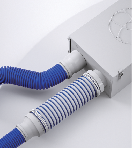Hệ thống Blaufast được thiết kế theo dạng ống tròn mềm kết hợp phụ kiện phân phối gió, giúp tối ưu không gian lắp đặt và dễ dàng thi công trong các loại công trình.